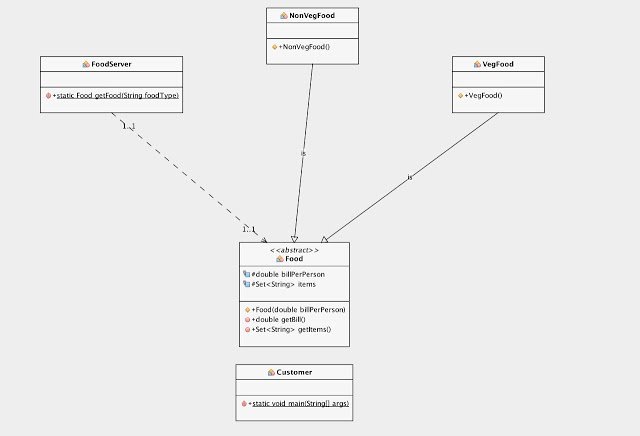 Treat VegFood, NonVegFood, and ItalianFood as three classes whose superclass is Food.