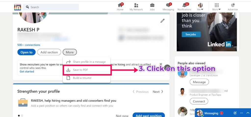 This will be helpful for a sudden call for a resume from a company. You can easily download an updated LinkedIn profile and share it with HR.