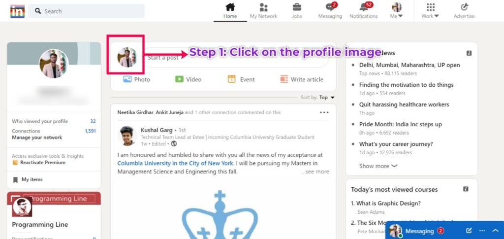 Click on the profile image on LinkedIn to arrive on the profile page. A LinkedIn resume can be downloaded from the profile section directly.