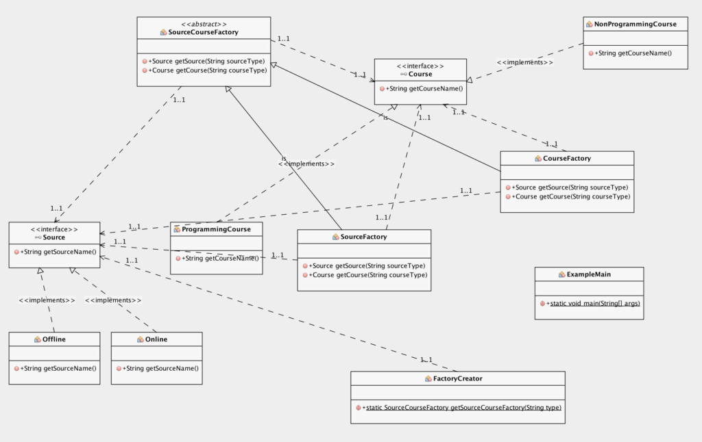SourceCourseFactory course = FactoryCreator.getSourceCourseFactory("course");